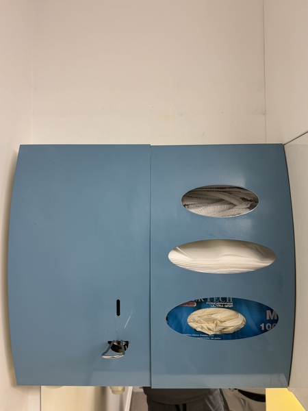 - 4 distributeurs, 2 distributeurs de savon et gobelets