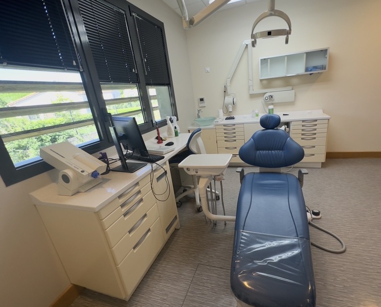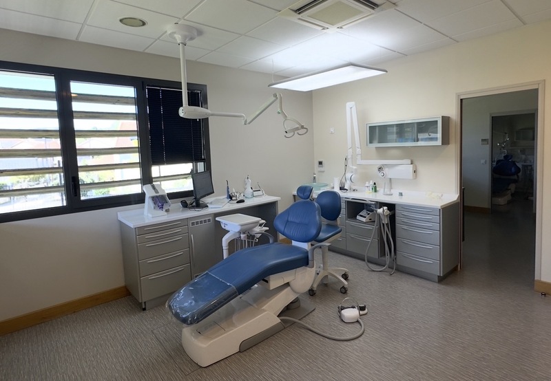 Le cabinet est composé d'une grande salle d'attente avec un accueil patients, de deux salles de soins identiques avec fauteuil Belmont, d'une salle de stérilisation entre ces deux salles, d'un bloc opératoire et d'une salle radio avec panoramique conebeam Clearstream.