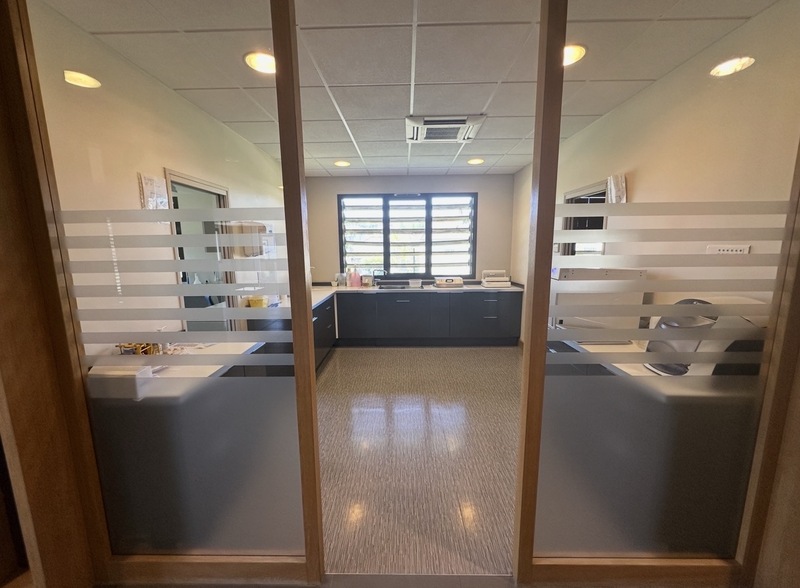 Il possède deux bureaux, un praticien et un assistante ainsi qu'une pièce de repos pour les pauses repas ou autre.