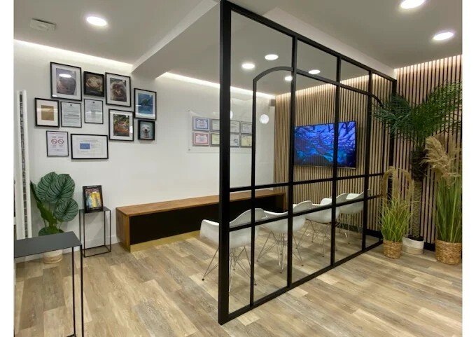 Empreinte optique, CBCT, laser diode, salle de chirurgie, moteur implants, piezo, coin de repos avec cuisine, salles de bains , chambres, bureau praticien...